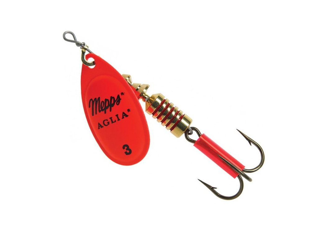 Mepps Aglia Fluo RedVýnimočnosť série Fluo spočíva v tom, že na krídelku sú použité farby, ktoré sú vo vode najlepšie viditeľné.