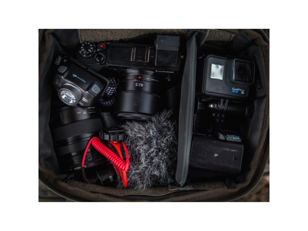 Praktická taška na elektroniku v kamuflážovom dizajne do ktorej bezpečne uložíte fotoaparát, power banku, svetlo, čelovku a ďalšie.