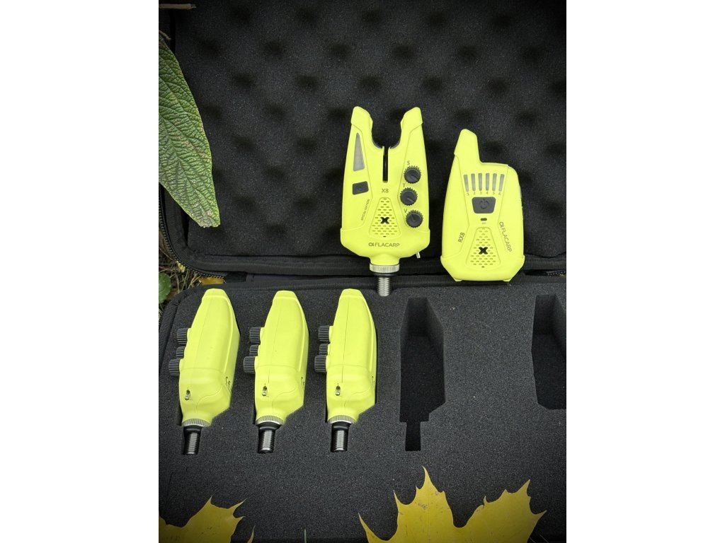 Flacarp X8 je nový špičkový signalizátor záberu so zabudovaným vysielačom, ktorý vychádza z obľúbeného modelu X7 avšak má pridané množstvo užitočných funkcií ako je režim potlačenia falošných záberov (napr. pri rybolove v nepriaznivom počasí alebo z člna), nočné pozičné svetlo pre swinger, širší rozsah regulácie dĺžky poťahu vlasca, vylepšený zvuk padáku pre jednoznačné rozlíšenie smeru odvíjania vlasca, širší rozsah nastavenia farieb LED diód a ďalšie vylepšenia.